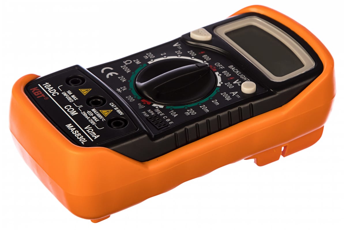 Цифровой мультиметр КВТ MAS830L 70475 предназначен для измерения постоянного и переменного напряжения, постоянного тока и сопротивления. С его помощью можно проверить исправность полупроводниковых диодов и прозвонить надежность соединений в электрических схемах. Полученные результаты отображаются на ЖК-дисплее с подсветкой, облегчающей считывание показаний при слабом освещении. Количество измерений составляет 2-3 раза в секунду.