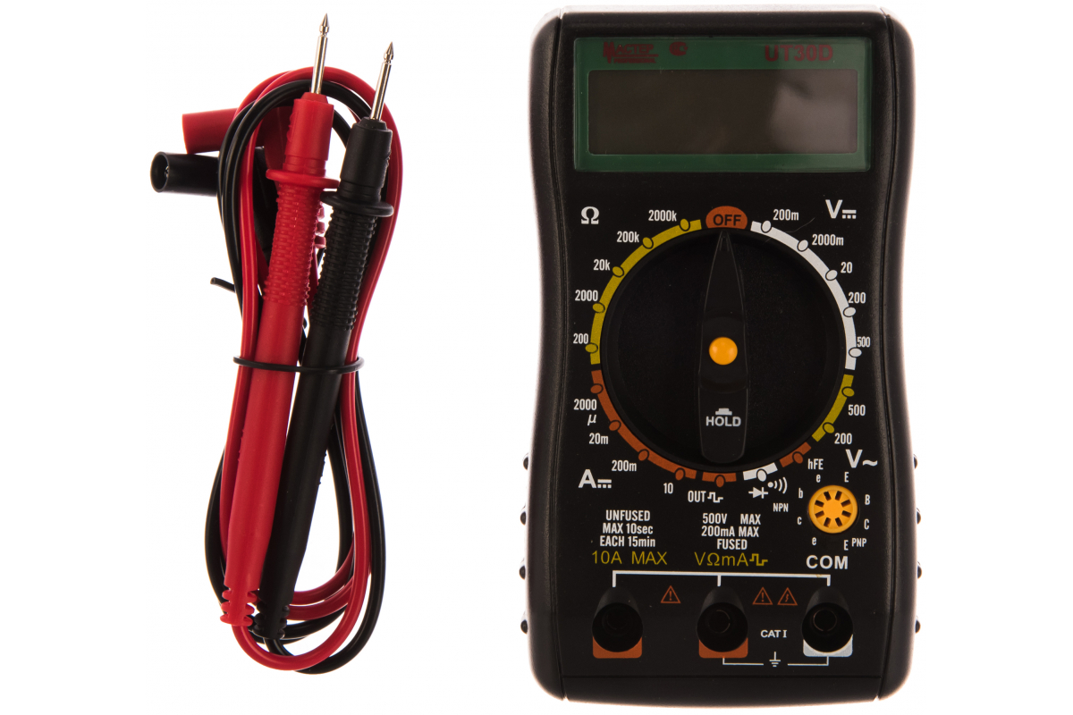 Цифровой мультиметр Master Professional UT30D 90032 используется для измерения напряжения, сопротивления, силы тока и температуры. Возможность проверки диодов делает прибор универсальным.
