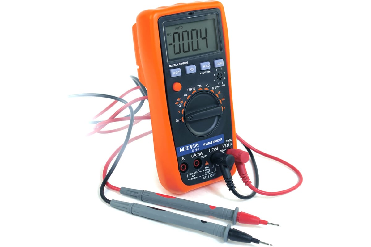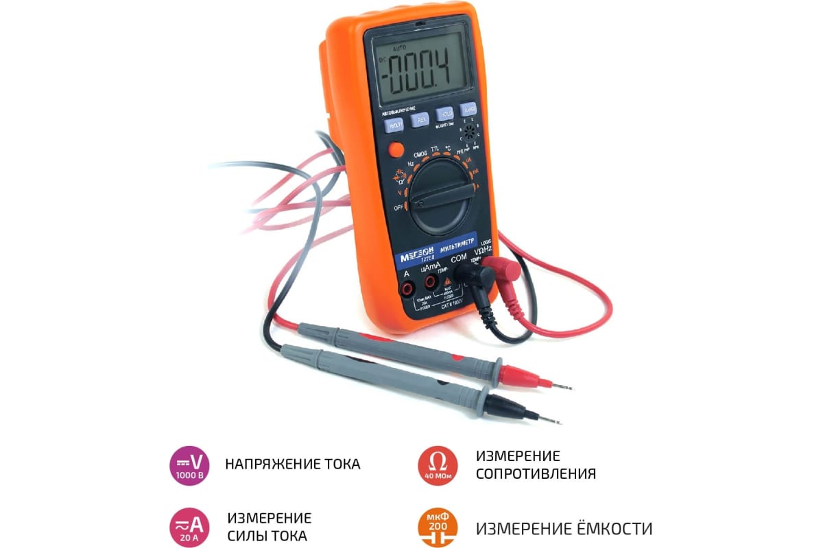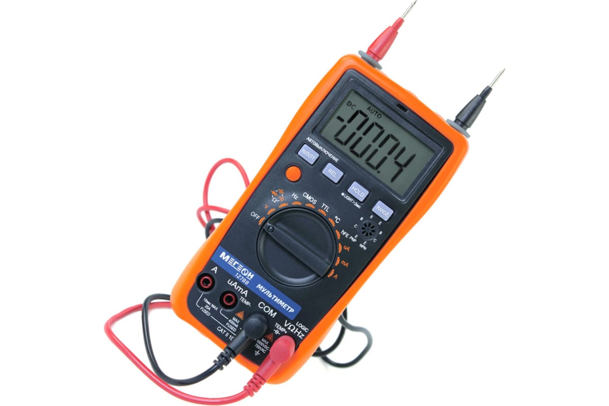 Мультиметр из новой линейки многофункциональных измерительных приборов с автоматическим переключением диапазонов измерений. Мультиметр измеряет переменное и постоянное напряжение, переменный и постоянный ток, сопротивление, ёмкость, частоту, скважность, температуру, коэффициент передачи транзисторов, логический пробник, также функция проверки на обрыв (прозвонка) и диодный тест. Мультиметр оснащен подсветкой дисплея, а также функцией автоматического отключения. Имеет защиту от перегрузки, индикатор разряда батареи и функцию фиксации текущего значения (HOLD), а также откидную подставку- упор на задней панели для удобства использования. Благодаря полноте набора измерительных функций, высокой точности измерения и удобству эксплуатации, этот мультиметр является идеальным прибором для лабораторий и производства, а также для быта и хобби.