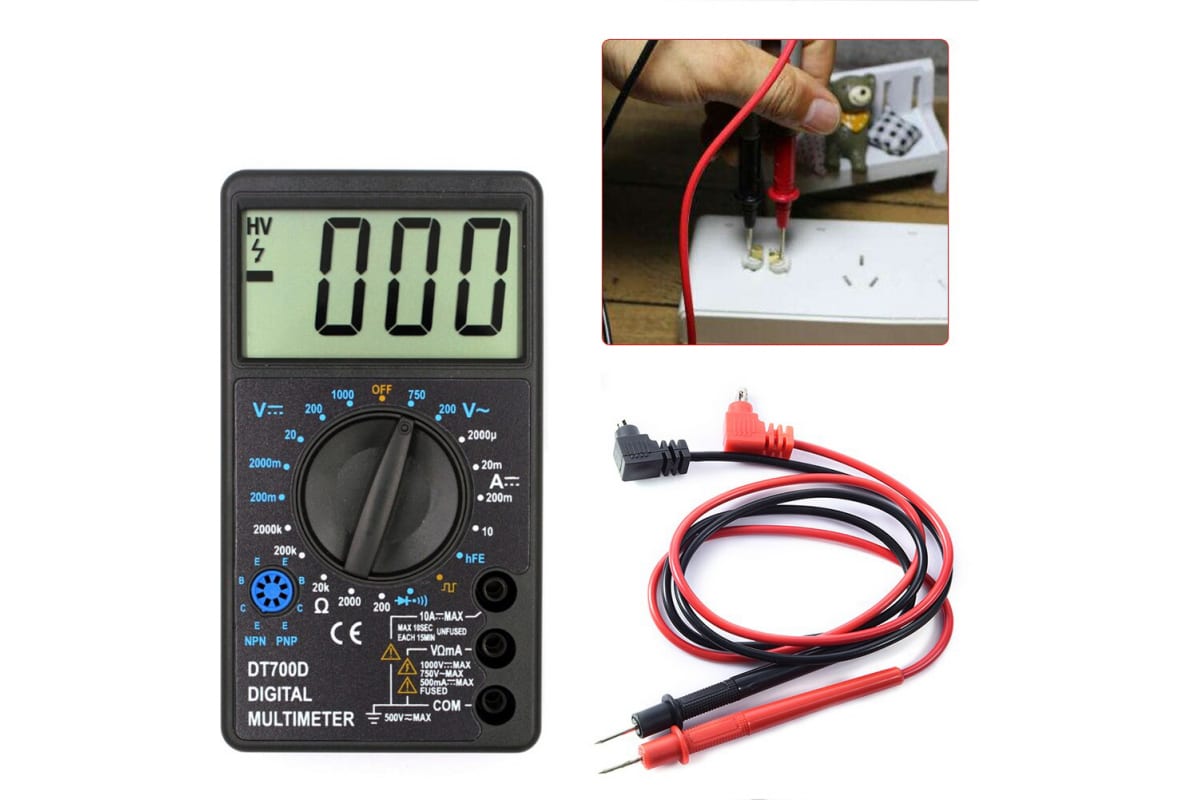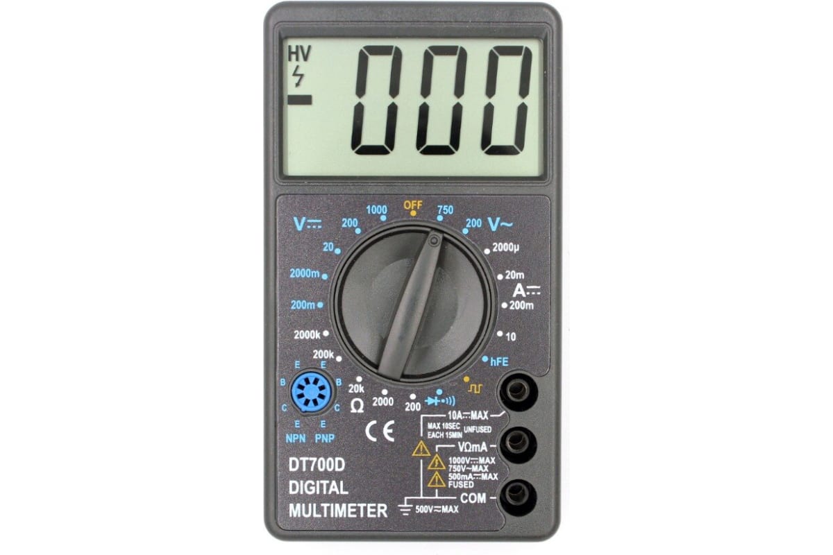 Цифровой мультиметр WHDZ DT700D для измерения постоянного, переменного напряжения, постоянного тока, сопротивлений, проверки диодов и транзисторов.
