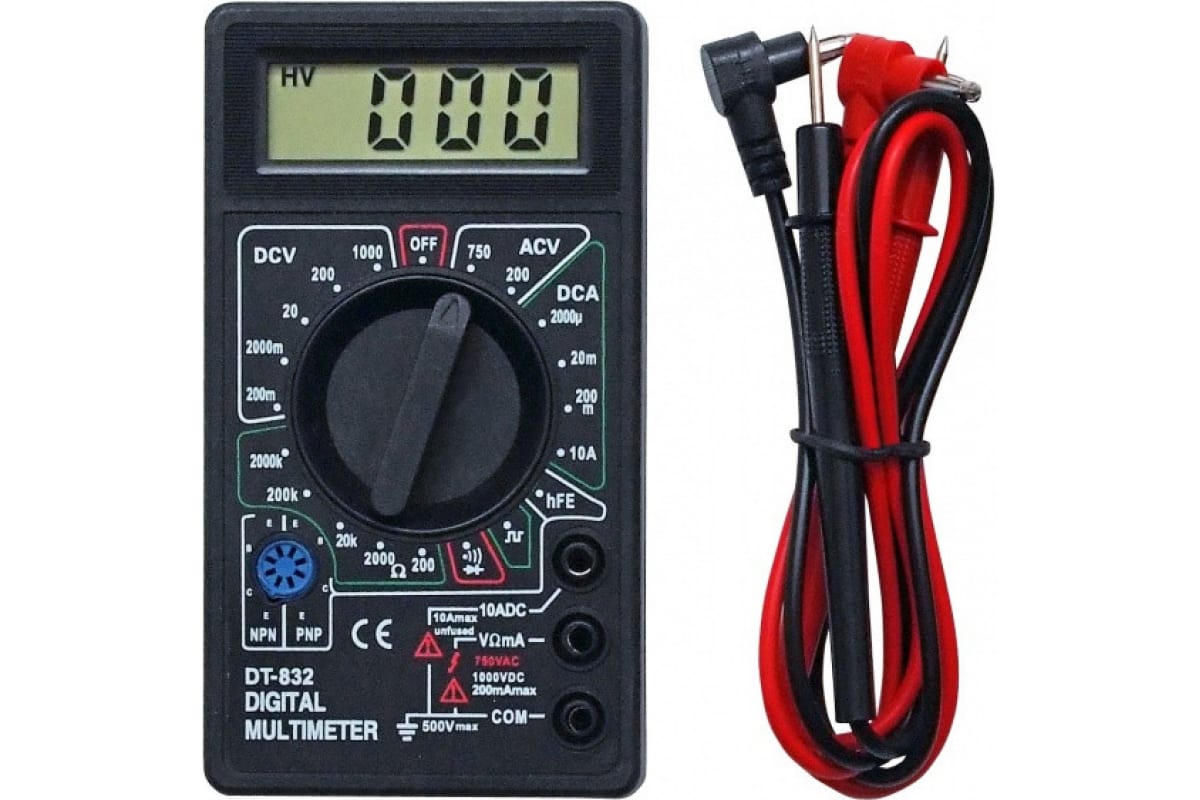 Цифровой мультиметр WHDZ DT832 – это один из серии карманных 3,5 -разрядных цифровых мультиметров для измерения постоянного, переменного напряжения, постоянного тока, сопротивлений, проверки диодов и транзисторов. Подойдет для использования в лабораториях, цехах, для хобби и для работы дома.