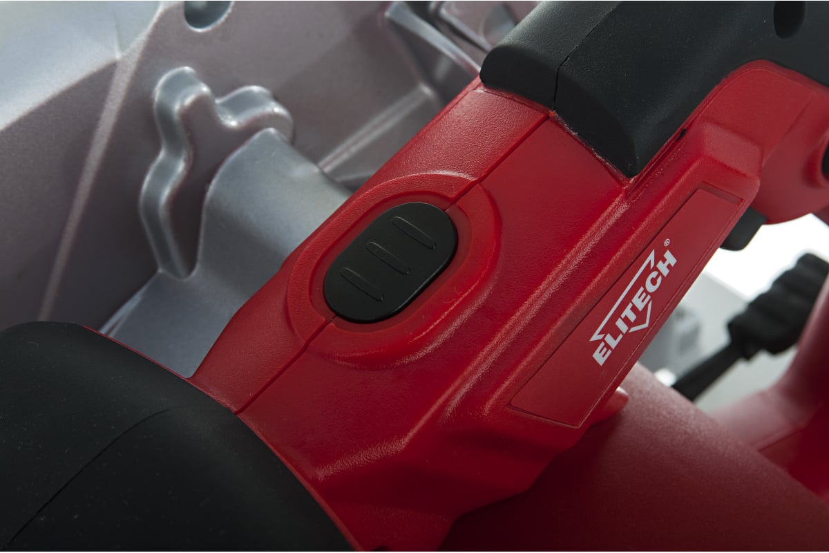 - Блокировка кнопки от случайного включения циркулярной пилы Elitech ПД1363.