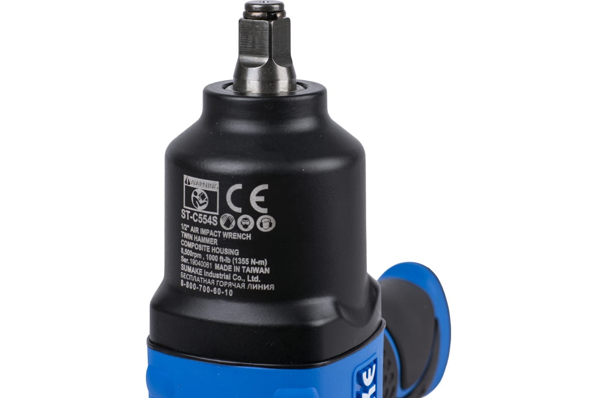 Ударный пневмогайковерт SUMAKE ST-C554 8094960 - самая мощная модель на 1/2 дюйма. Благодаря композитному корпусу, он достаточно легкий. Удобно расположенная клавиша "Пуск" - для простоты управления работой инструмента. Модель имеет надёжный ударный механизм Twin Hammer. Расход воздуха составляет 480 л\мин. Модель работает на сжатом воздухе, что минимизирует пожаро- и взрывоопасность рабочего процесса в условиях специфического производства.