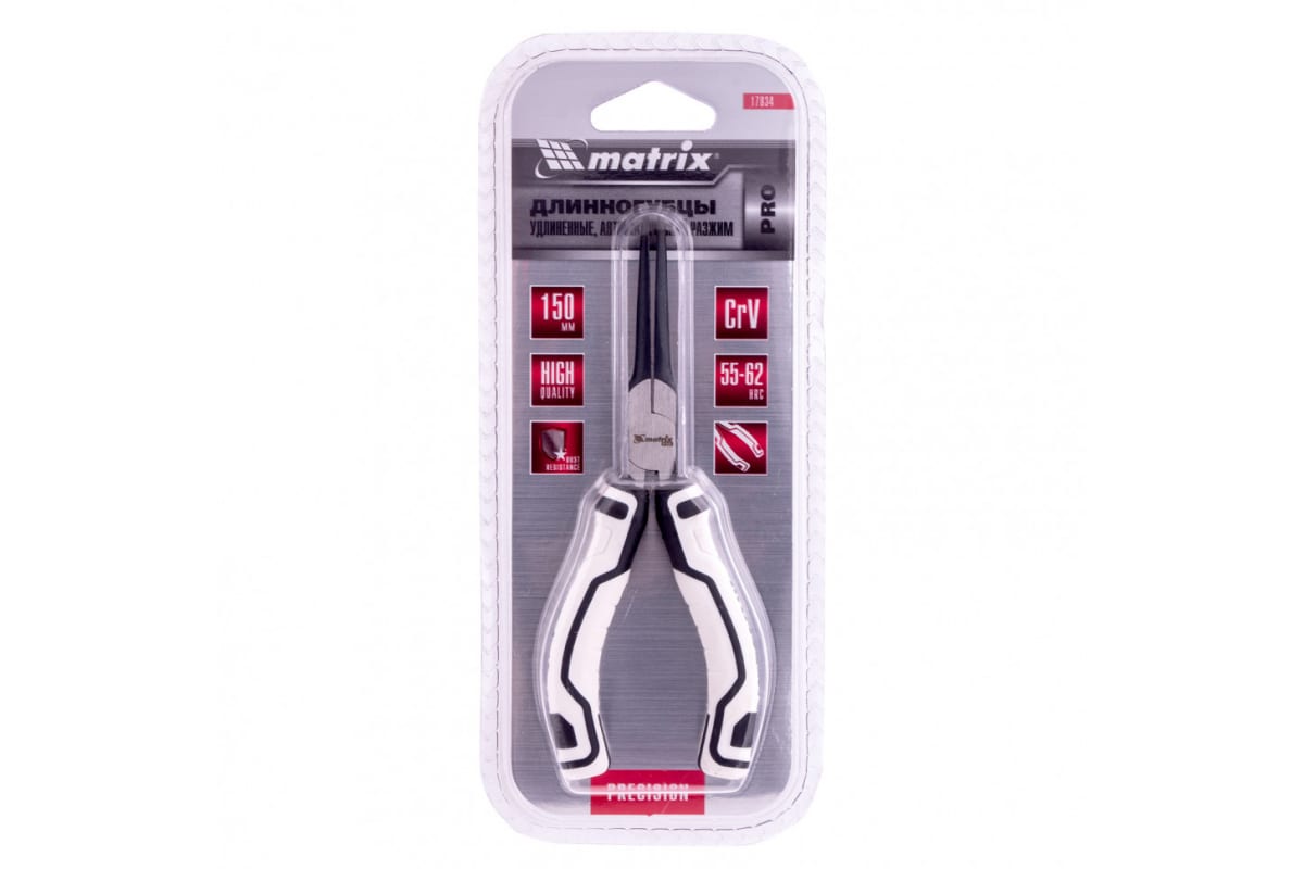 Удлиненные (150 мм) длинногубцы Matrix PRO Mini 17834 с авторазжимом пригодятся во время монтажных/демонтажных и ремонтных работ, например, починки бытовой техники. С их помощью удобно захватывать и удерживать мелкие детали, проволоку и провода. Мини-длинногубцы позволяют выполнять операции, требующие высокой точности и аккуратности.