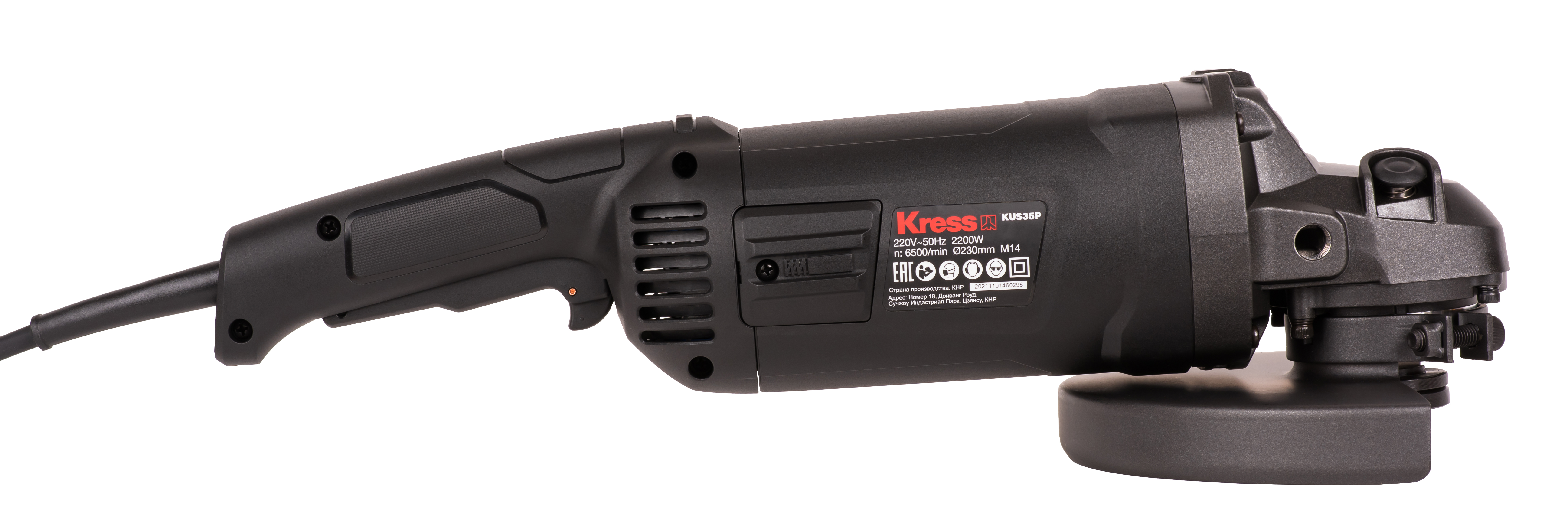 Углошлифовальная машина KRESS KUS35P, с диаметром диска 230 мм, а также с мощным двигателем 2200 Вт поможет справится с любой задачей. А полностью пылезащищенный корпус позволит работать с любыми материалами. Плавный пуск позволит избежать рывков инструмента при запуске