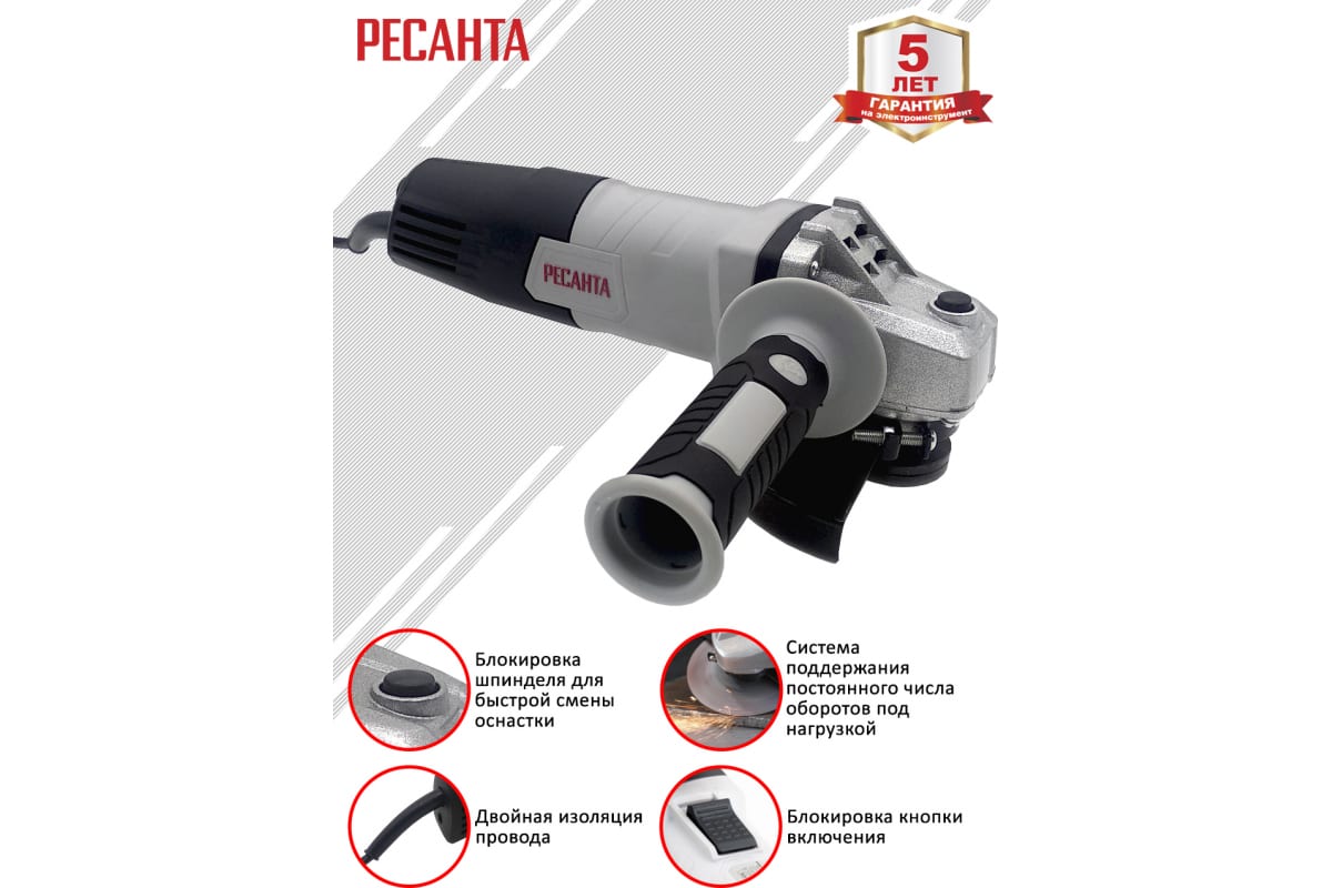 - Обрезиненная боковая рукоять для лучшего контроля над Ресанта УШМ-125/900 75/12/2