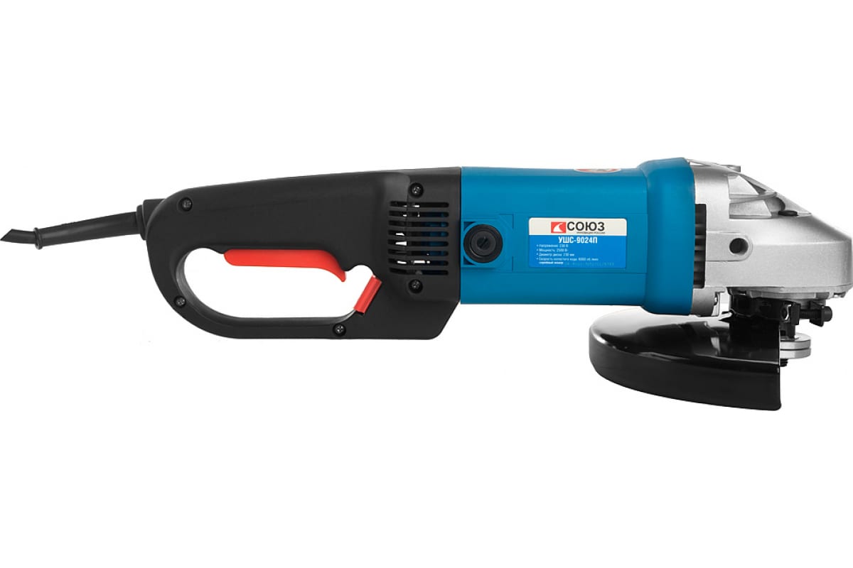 Углошлифовальная машина СОЮЗ УШС-9024П оснащена мощным двигателем, что обеспечивает высокую производительность. Благодаря наличию функции блокировки шпинделя заменить оснастку не составит труда. Дополнительную рукоятку в зависимости от предпочтений оператора можно установить слева, справа или сверху.