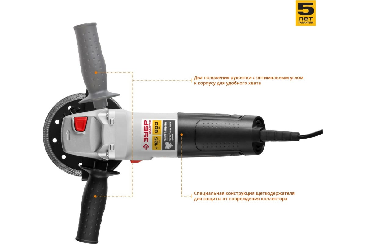 Преимущества ЗУБР МАСТЕР УШМ-125-800 М3- Удобная машина для работы одной рукой