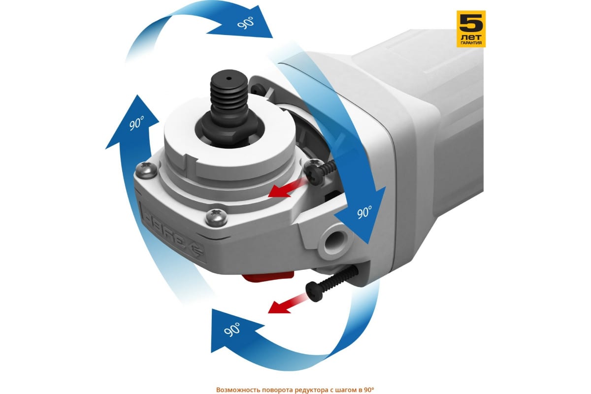 Поворотная голова с шагом 90° позволяет настроить инструмент под левую руку или для резки.