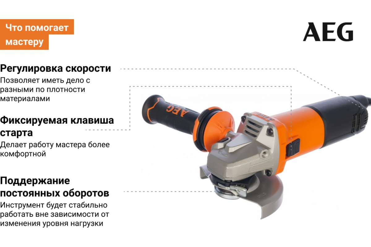 - Двухпозиционная рукоятка с виброзащитой - для комфортной работы AEG WS13-125SXE 4935451309.