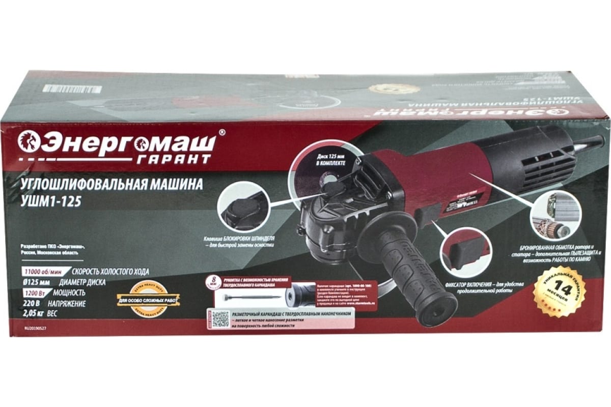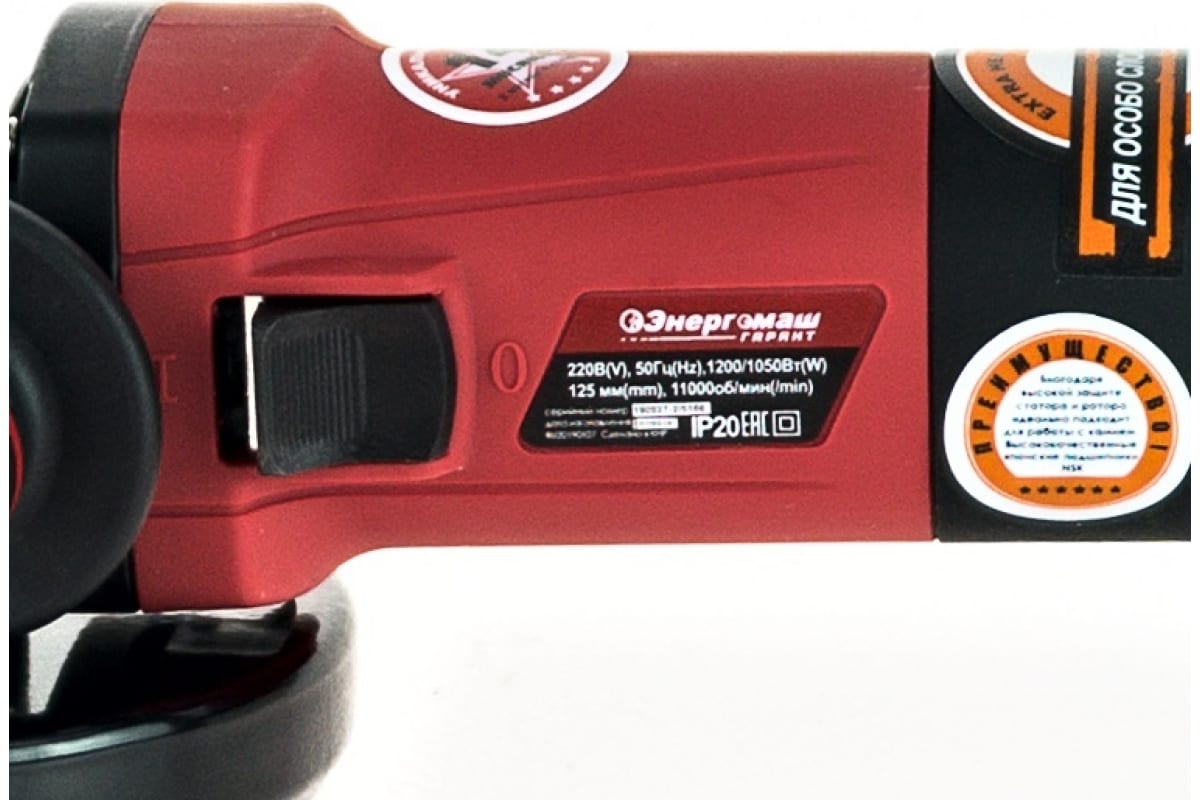 - Эргономичный тонкий корпус для комфортной работы Энергомаш Гарант 125 мм, 1200 Вт УШМ1-125