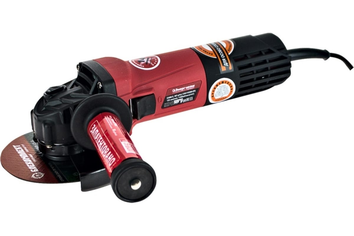 Преимущества Энергомаш Гарант УШМ1-125- Независимость от заряда батареи и, соответственно, большая производительность без простоев для зарядки