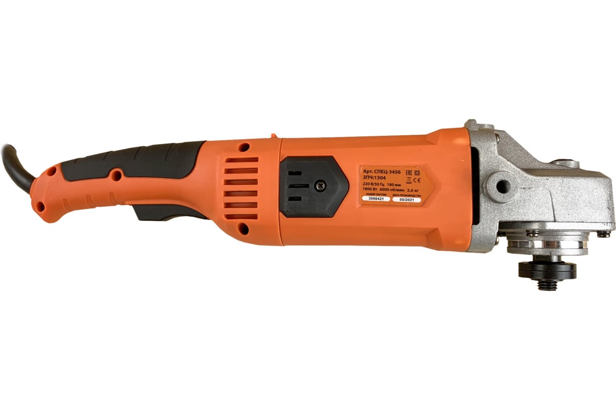 - Вентиляционные отверстия на корпусе угловой шлифмашины Спец БШУ-1800 новая СПЕЦ-3456 предохраняют двигатель от перегрева