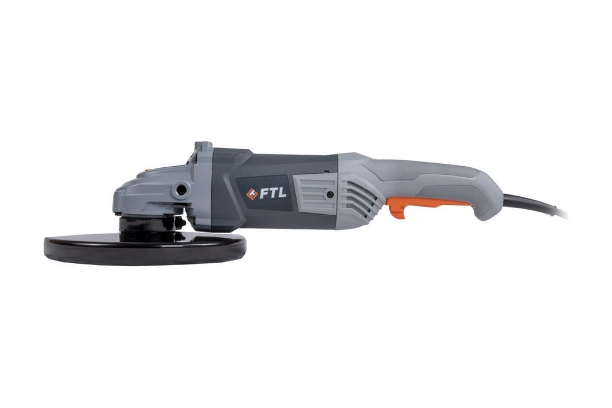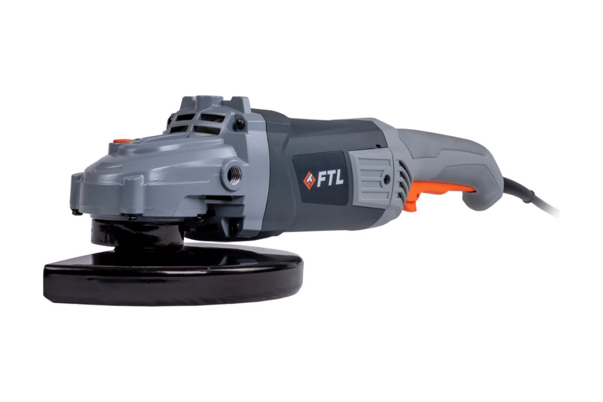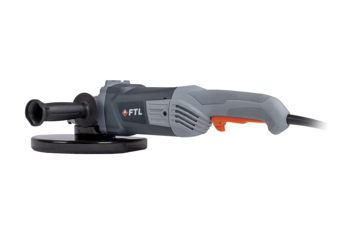 Угловая шлифовальная машина FTL AG 230 7074 – профессиональный инструмент для резки, шлифования и зачистки изделий металла, камня и прочих материалов. Оси двигателя и инструмента расположены под углом 90 градусов по отношению друг к другу.