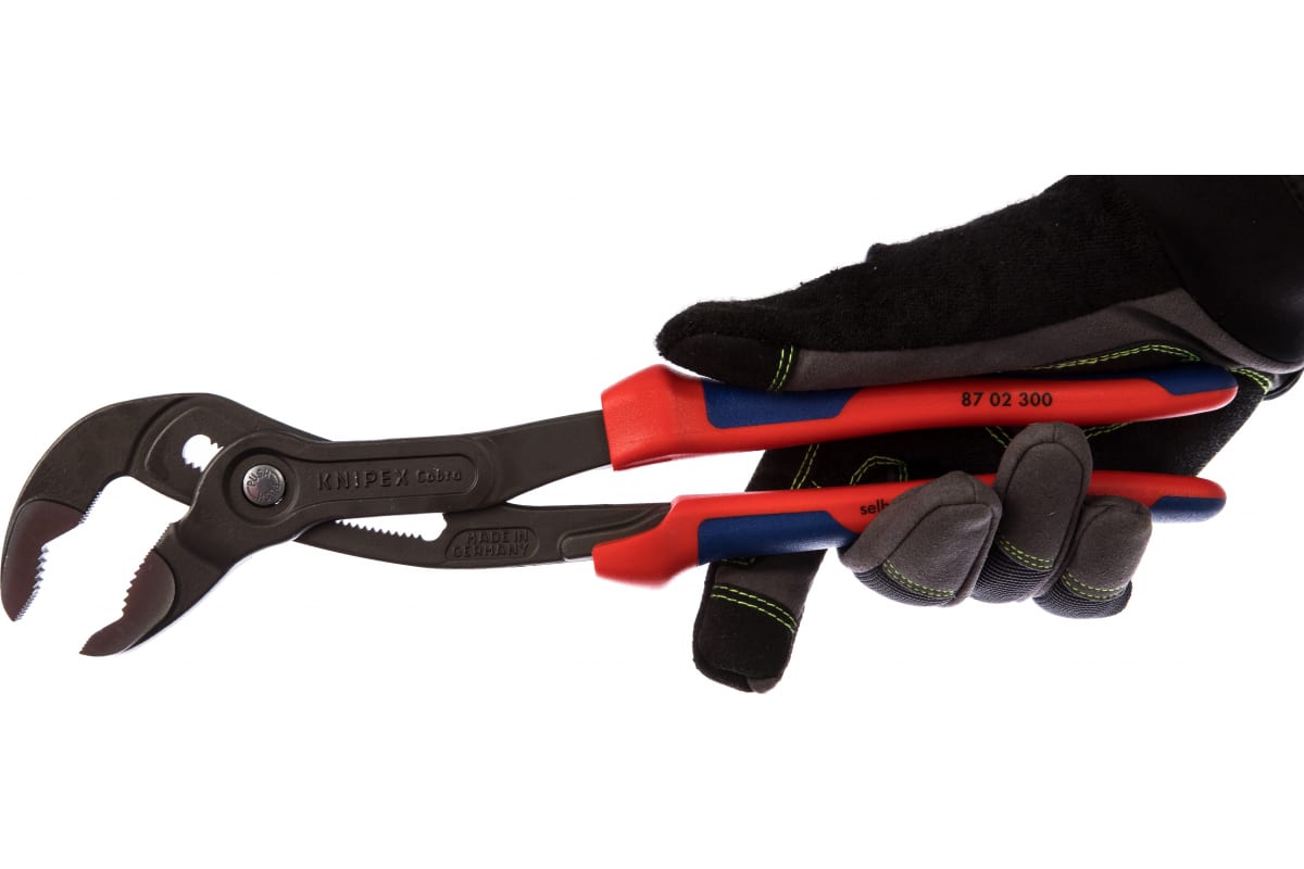 Универсальные переставные клещи KNIPEX КОБРА KN-8702300 используются для различных видов работ с деталями круглого профиля - до 70 мм (2 3/4"), шестигранного профиля - до 60 мм. Регулировка размера захвата клещей осуществляется при помощи всего одной кнопки. Диапазон захвата, по сравнению с обычными трубными клещами, увеличен на 30%.