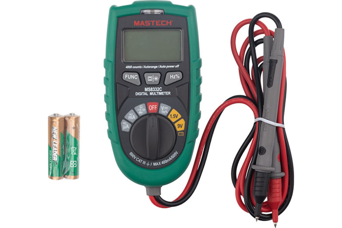 Универсальный мультиметр MASTECH MS8332C 13-2030 пригодится для измерения напряжения, силы тока, емкости, частоты и сопротивления. Также имеет возможность тестирования диодов и прозвонки цепи.