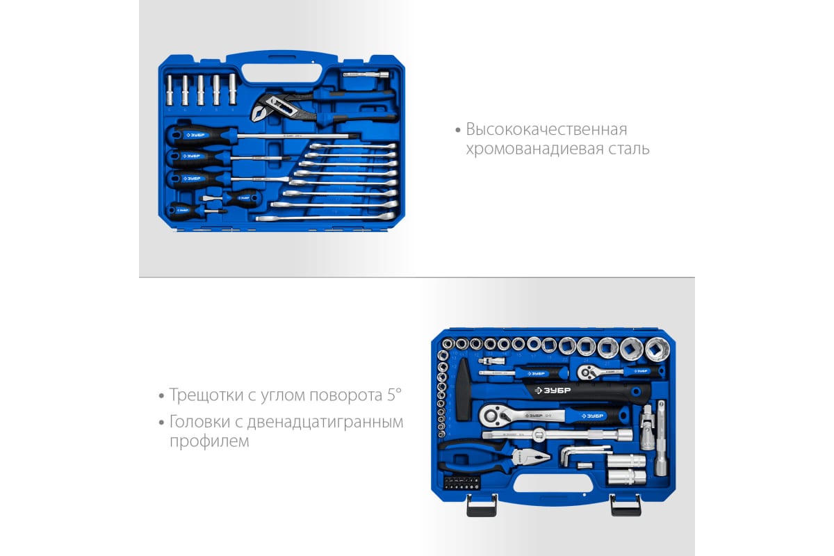 Преимущества набора инструмента ЗУБР 27670-H76- Высококачественная сталь