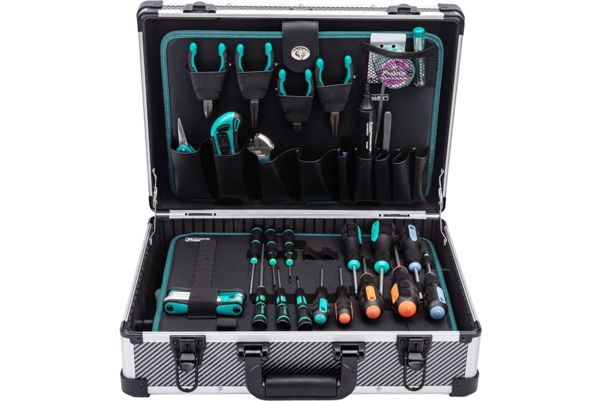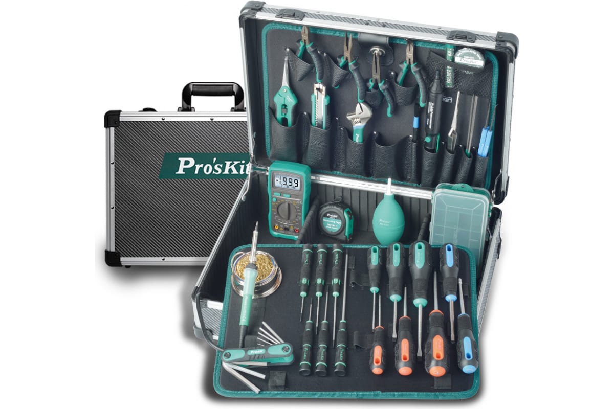 Универсальный набор инструментов ProsKit PK-1305NB С00040050 представляет собой комплект профессионального инструмента. Отлично подойдет для работы монтажников и электриков. Поставляется в алюминиевом чемодане, который выполнен из качественных материалов. Прочный корпус закрывается на ключ (в комплекте 2 ключа).