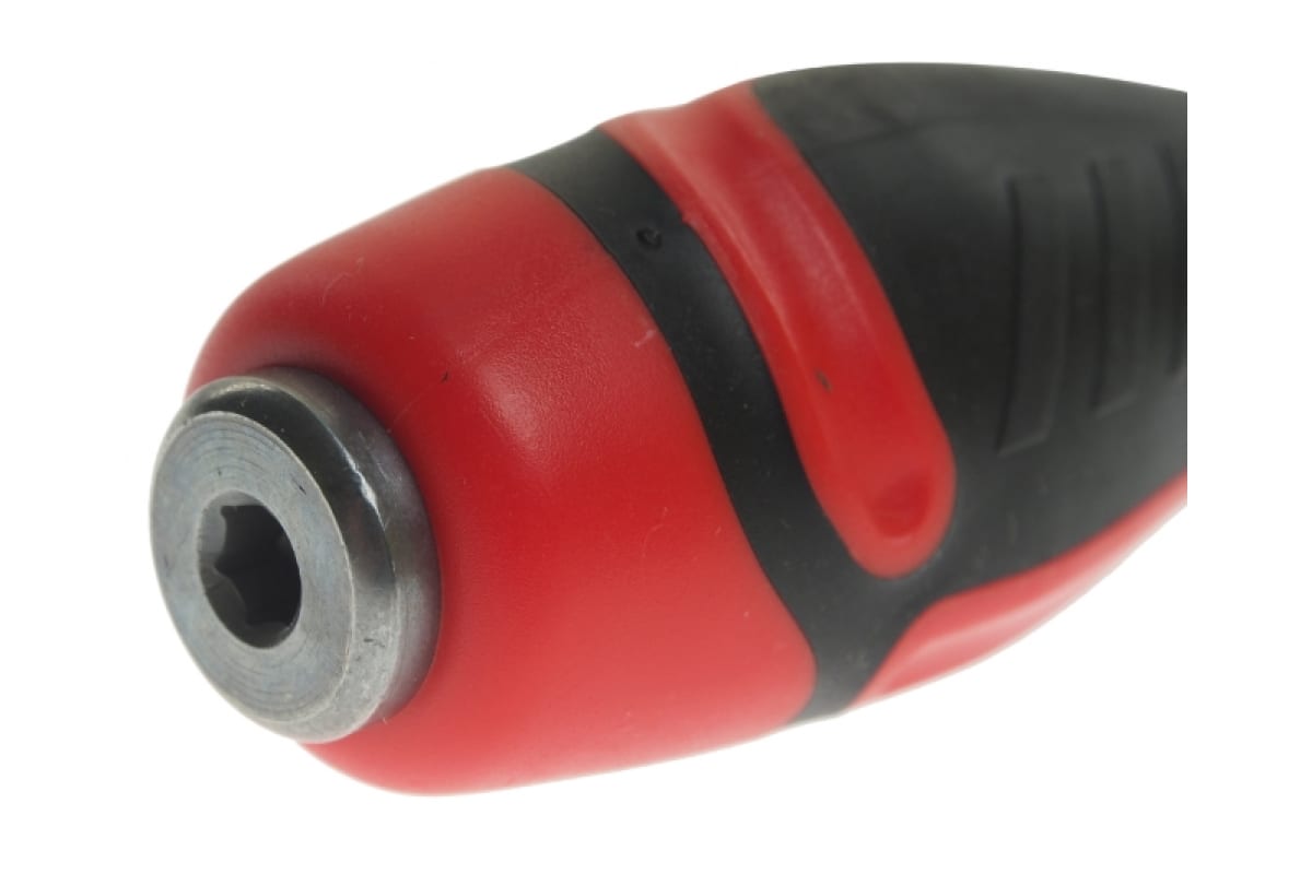 Намагниченный наконечник помогает не потерять мелкий крепеж при работе в узких каналах и углублениях.