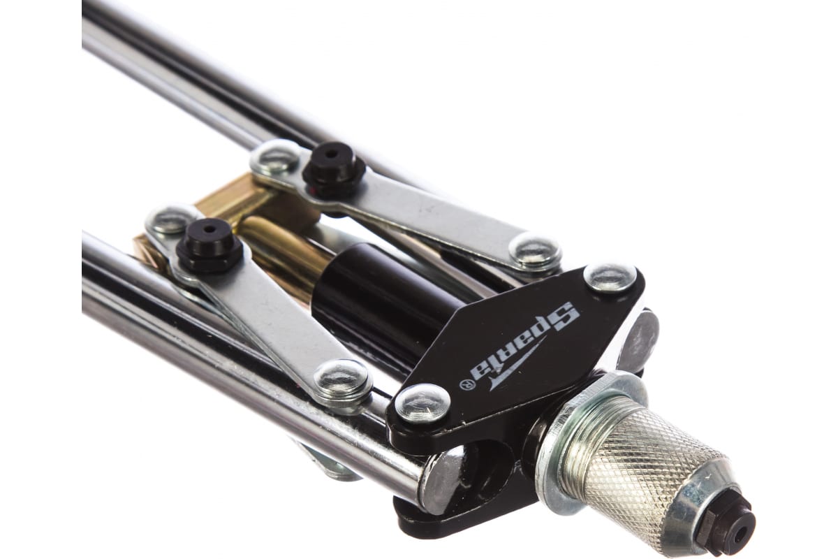 Усиленный двуручный заклепочник 450 мм SPARTA 405385 - высокопроизводительный инструмент для создания крепления тонких листов металла. Оснащен цанговым механизмом и удлиненными рукоятками, что обеспечивает легкость проведения работ. Цельнометаллический корпус гарантирует длительный срок службы. Диаметр используемых заклёпок: 2.4, 3.2, 4.0, 4.8 мм.