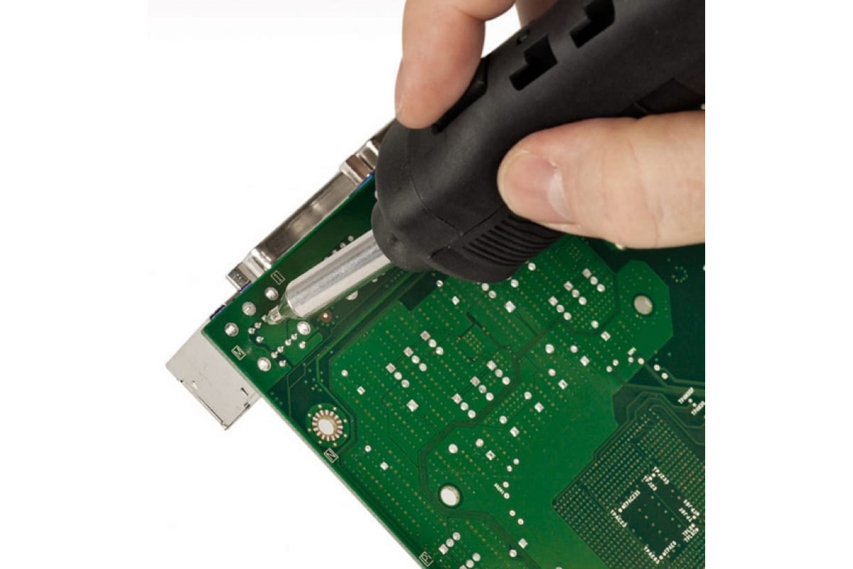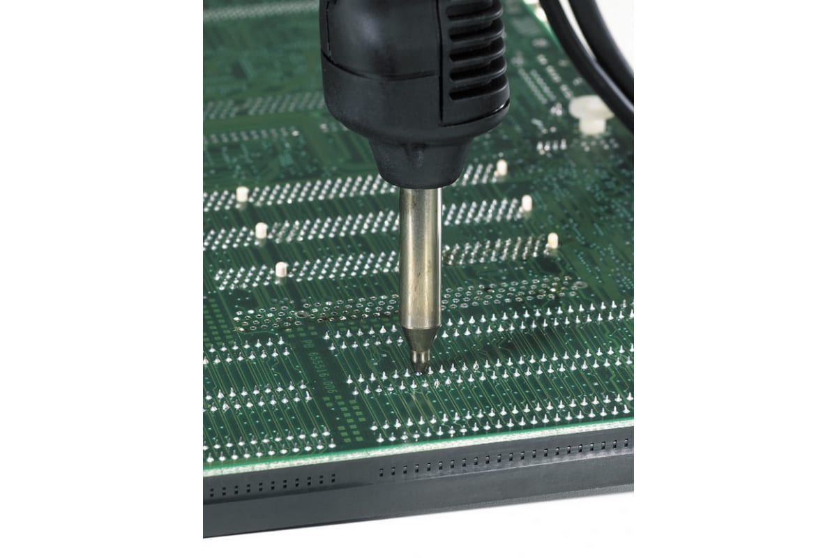 Вакуумный паяльник METCAL MX-DS1 с подставкой MX-W5DS MX-UK5 рекомендуется для прогрева тяжелых выводов компонентов на массивных контактных площадках. Глубокий вакуум регулируется давлением подаваемого сжатого воздуха.