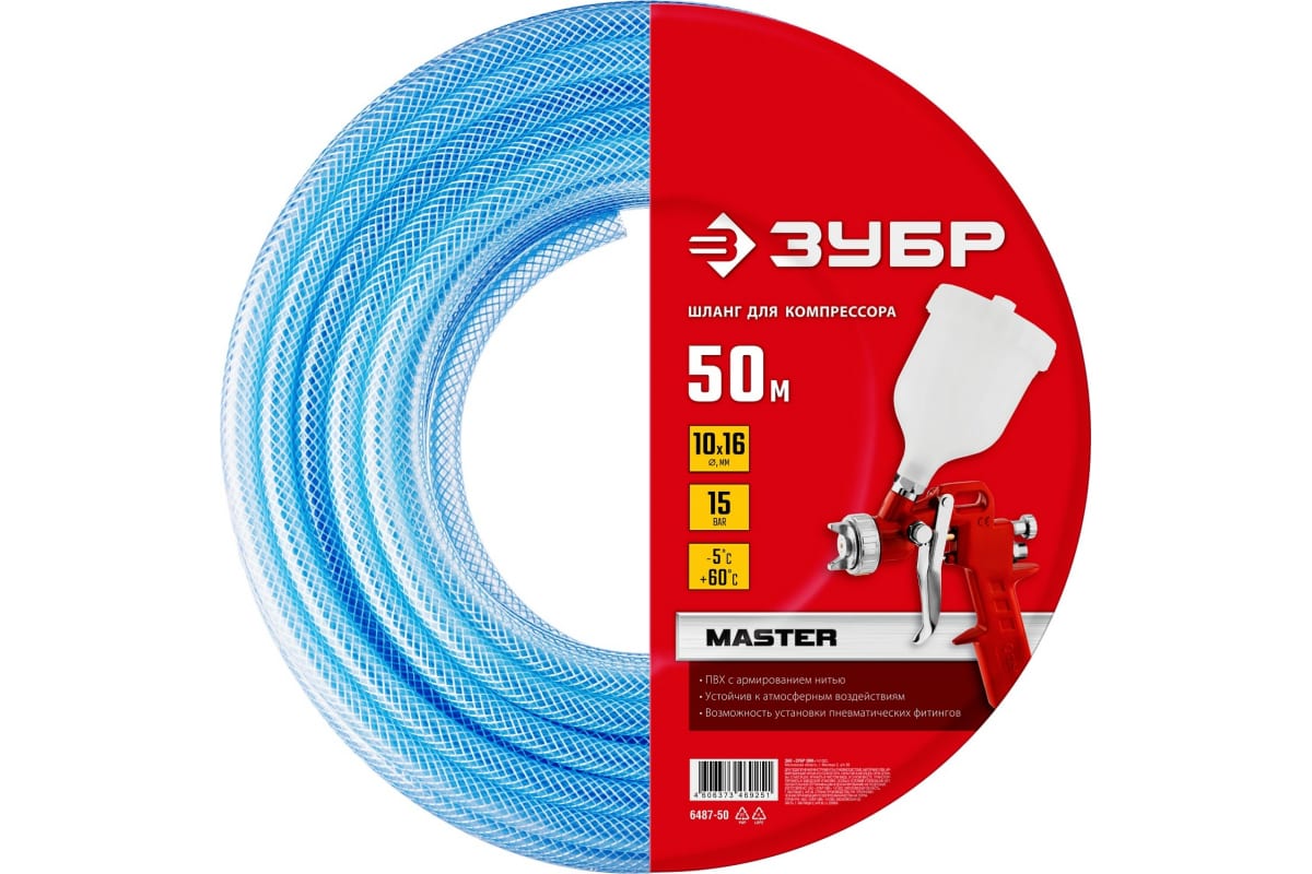 Воздушный шланг ЗУБР 50 м, 10x16 мм 6487-50 применяется для подключения инструмента к пневмосистеме.