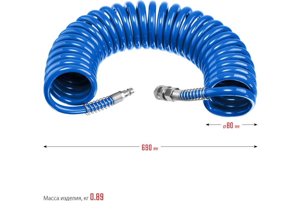Преимущества воздушного спирального шланга ЗУБР 6472-10- Прочный полиуретан.