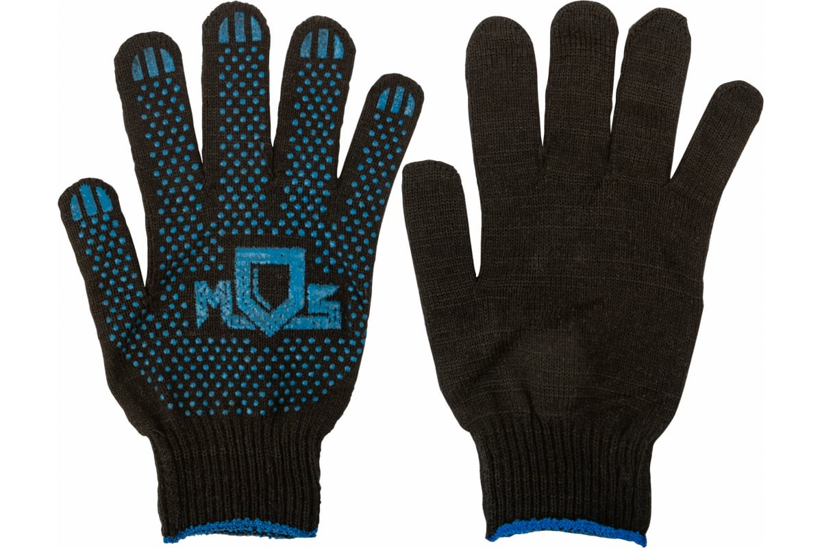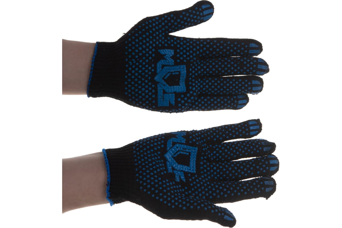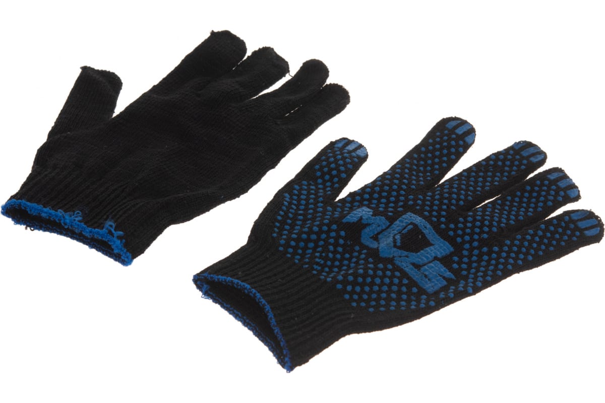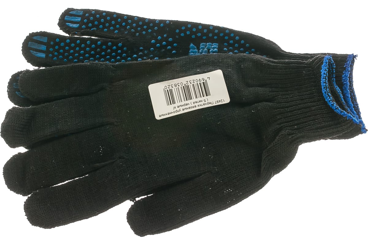 Вязаные упрочненные перчатки РОС черные, х/б с ПВХ 12497 обеспечивают защиту рук от механических воздействий.