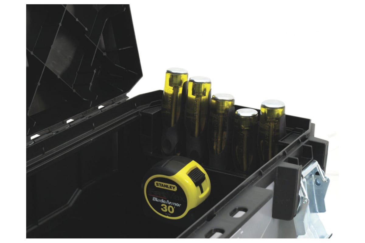 Ящик 23" Stanley 1-95-616 предназначен для хранения и транспортировки инструментов. Две металлические защелки надежно защищают от непреднамеренного открывания. Такой ящик пригодится как профессионалу, так и домашнему мастеру: он позволяет держать инструменты и крепежные детали в одном месте и обеспечивает их сохранность. Приспособление оснащено удобной ручкой, выполнено из прочных материалов. Габаритные размеры: 58,4 х 29,3 х 29,5 см.