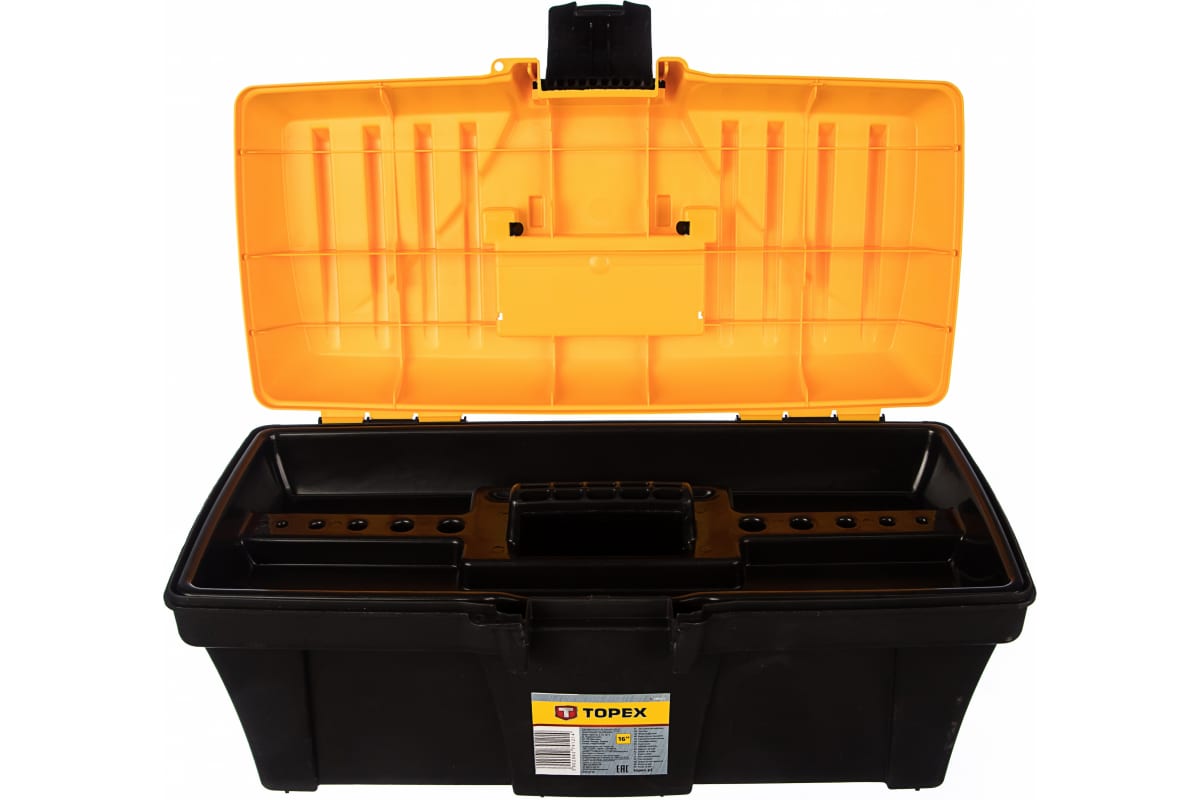 Ящик для инструмента TOPEX 79R121 используется для хранения и транспортировки ручного инструмента. Ящик оснащен удобной ручкой для переноски. При изготовлении используется прочный пластик, обеспечивающий длительный срок эксплуатации.