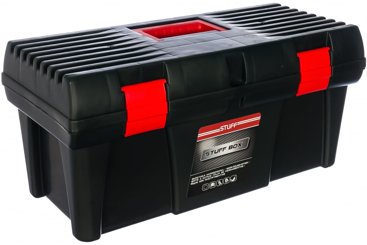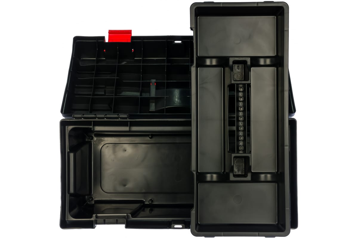 Ящик для инструментов 53х26х25см PATROL STUFF Basic 20 146175 разделен на общее внутреннее пространство и лоток для крепежа и прочих мелочей. Модель оснащена специальными пазами в рукоятке для хранения бит.