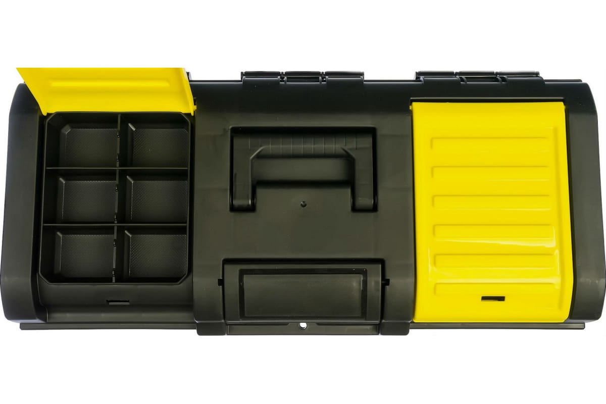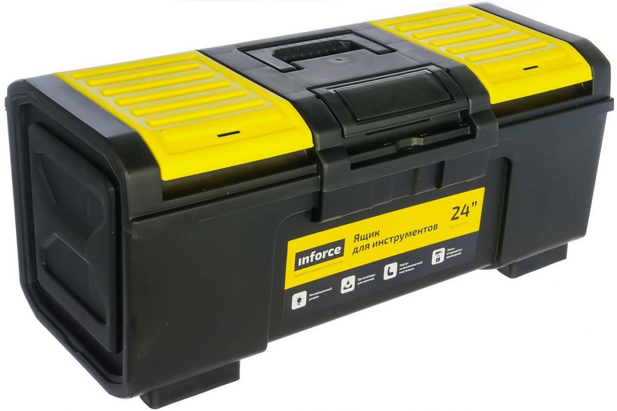Ящик для инструментов Inforce 24" 06-20-03 - это прочное и вместительное приспособление, которое подойдет не только для хранения ручного инструмента, но также для размещения крепежа и оснастки. Корпус изготовлен из пластика. Ящик плотно закрывается при помощи защелки. Контейнер удобно транспортировать при помощи ручки.