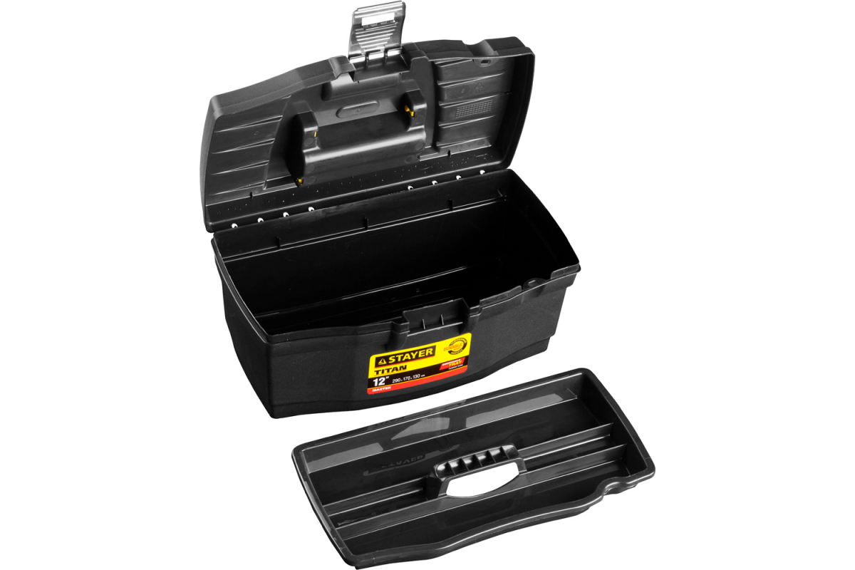 - Корпус ящика STAYER MASTER для инструмента, 290x130x170мм 12" 38016-12 изготовлен из пластика.