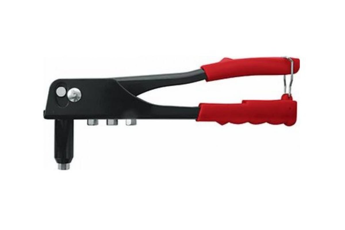 Заклепочник 2.4-4.8 мм, 240 мм Контрфорс 080110 используется в сфере монтажных работ для скрепления профилей и других различных материалов алюминиевыми вытяжными заклепками. Инструмент является простым и удобным в использовании. Он оснащен удобными рукоятками с фиксатором от случайных выстрелов в неиспользуемом состоянии. В комплекте к изделию идут 4 сменные насадки.