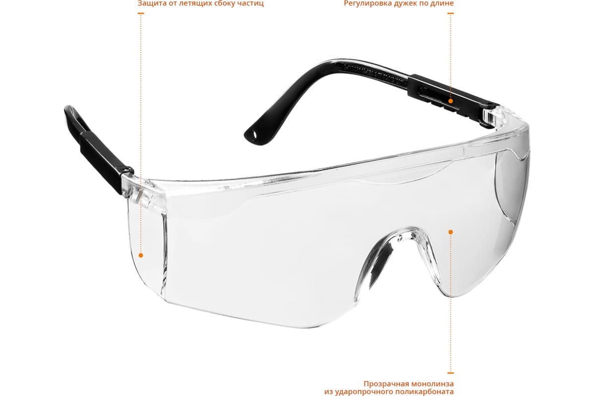 Качественные материалы и надежная конструкция гарантируют долгий срок службы защитных очков.