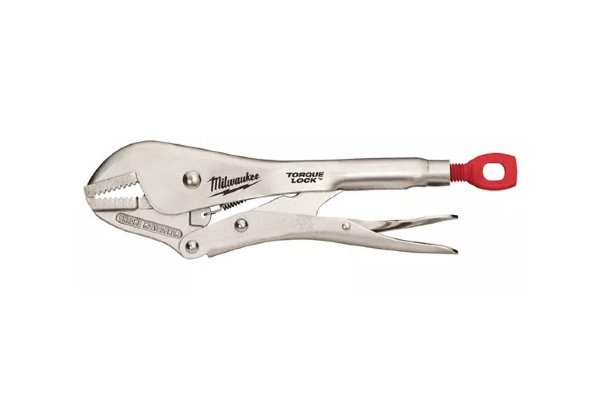 Зажим (10 дюймов, прямые губки) Milwaukee TORQUE LOCK 48223510 имеет закаленные зазубренные губки и прочный корпус. Регулировочный винт обеспечивает высокое качество сжатия. Отверстие позволяет затянуть его при помощи воротка или отвертки. Клещи защищены от коррозии хромированным покрытием.