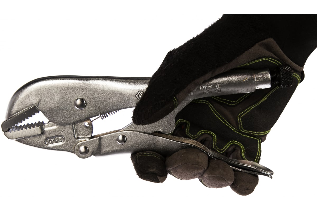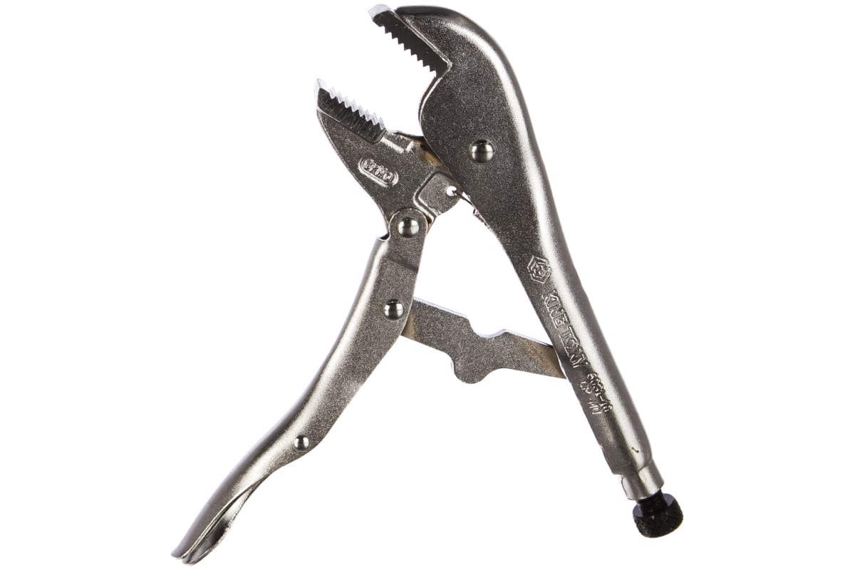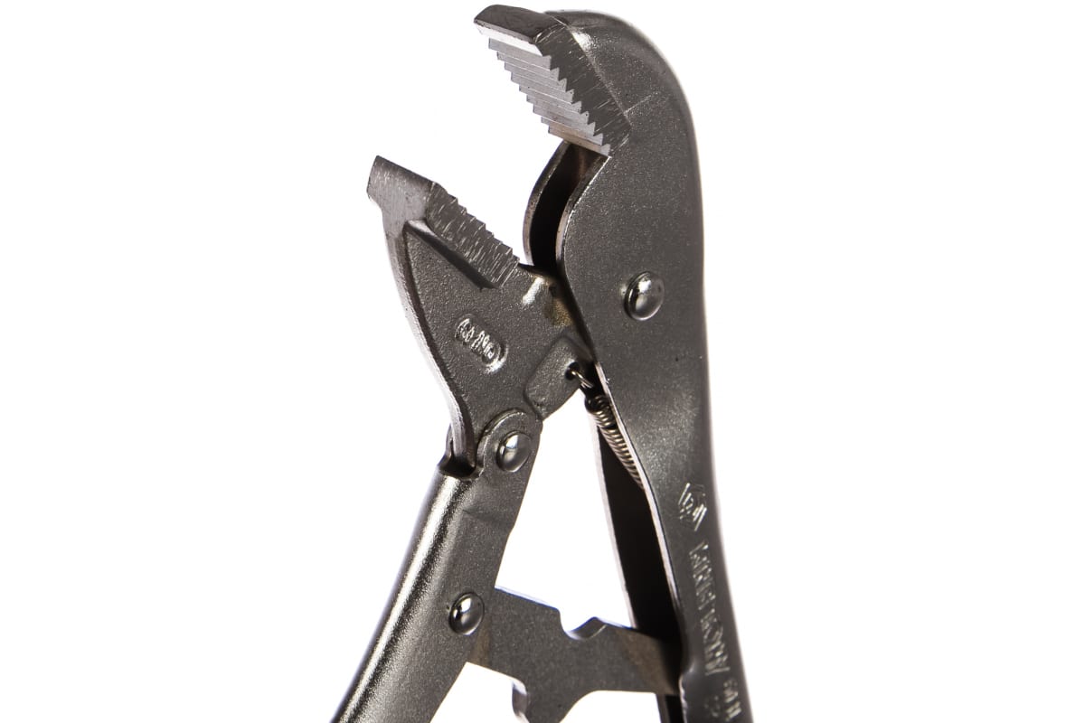 Зажим с фиксатором и прямыми губками 250мм KING TONY 6031-10R служит для захвата и удержания деталей и заготовок различных форм и размеров. Губки имеют прямую конструкцию. Для более прочной фиксации необходимого предмета без проскальзывания на захватных поверхностях предусмотрены зубчики. Верхняя рукоятка инструмента оснащена регулировочным винтом.