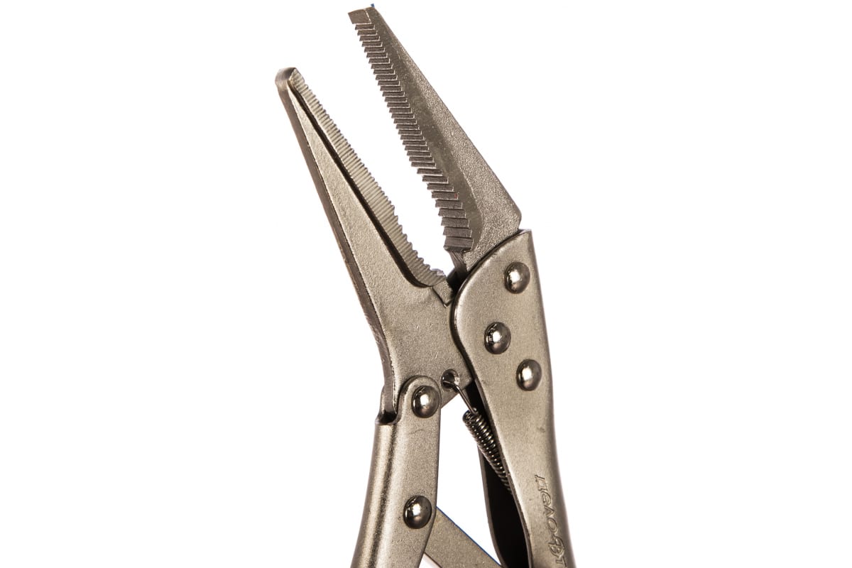 Зажим с фиксатором с удлиненными губками 250 мм 48/ Дело Техники 432251 разработан для слесарно-монтажных работ. Размер и форма губок подойдут для труднодоступных мест.