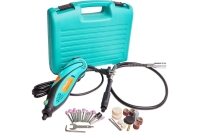 Электрический гравер Sturm GM2314F имеет регулировку оборотов, что позволяет выбрать оптимальный режим работы. Благодаря блокировке шпинделя, заменить оснастку не составляет труда. Гибкий вал, входящий в комплект, помогает при работе в труднодоступных местах. Модель поставляется с 40 аксессуарами в пластиковом кейсе.