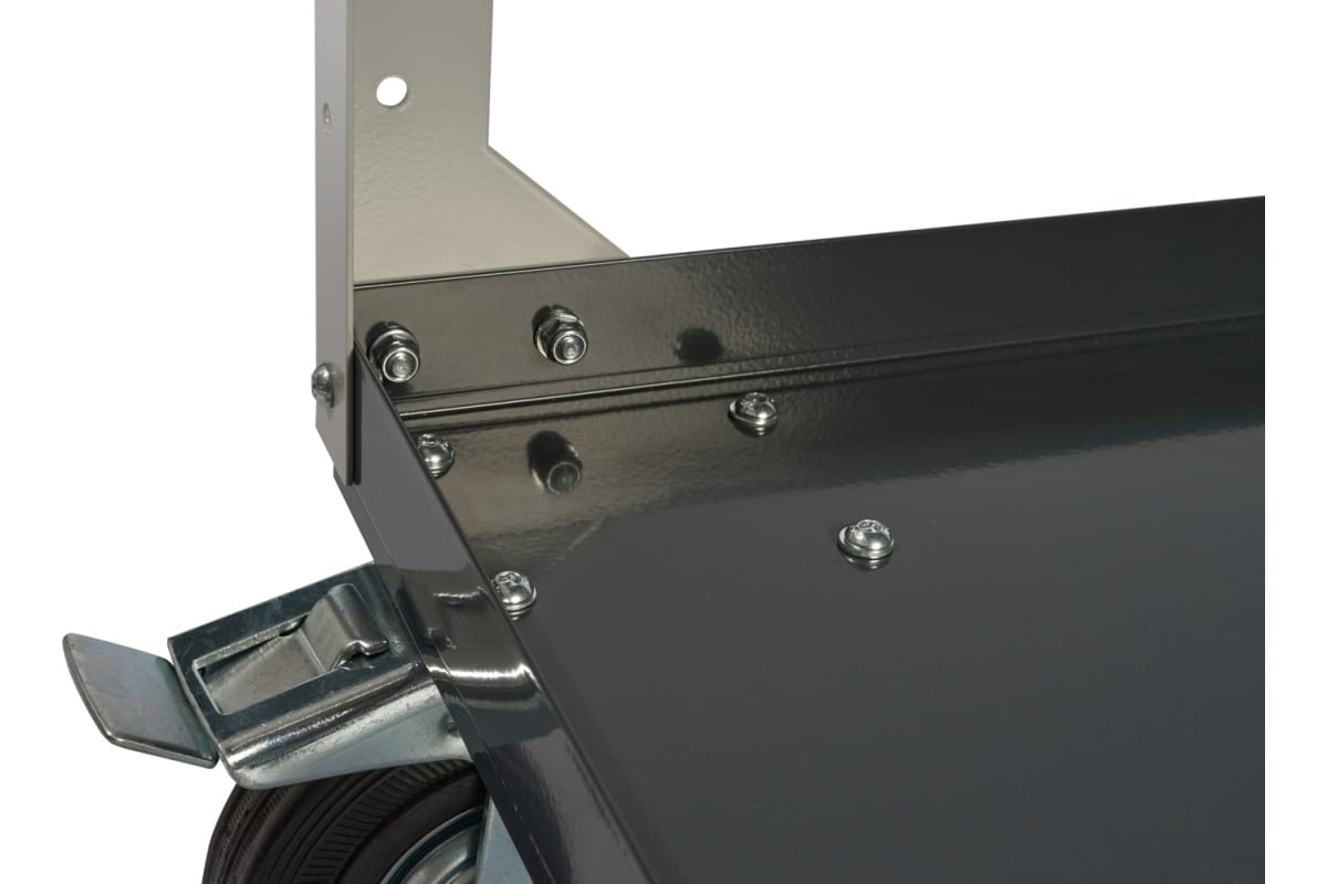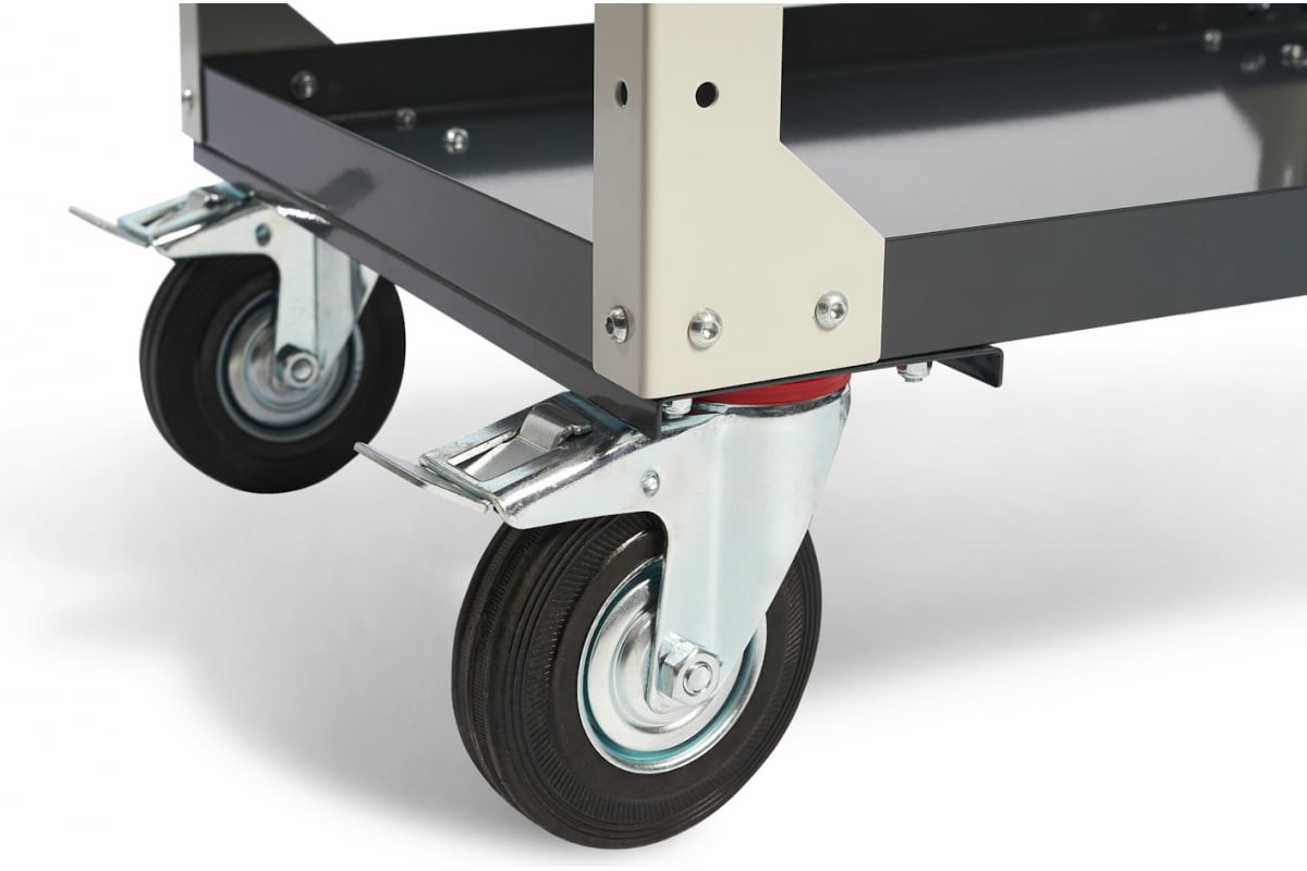 Тележка оборудована поворотными колесами из маслобензостойкой резины диаметром 125 мм, два колеса с тормозом.