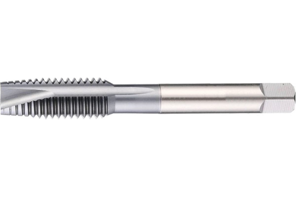 Прямая стружечная канавка выполнена с винтовой подточкой передней поверхности. Заходная часть 4-5 витков. Метчик используется для сквозных отверстий.